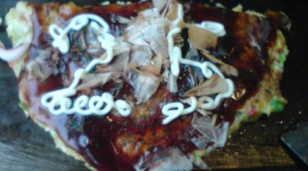 先生とお好み焼きと焼きそばを半分こ